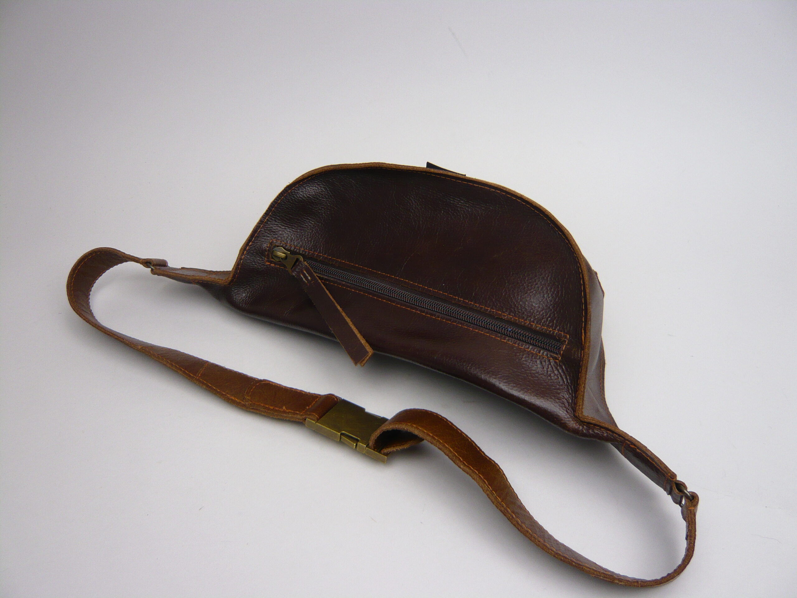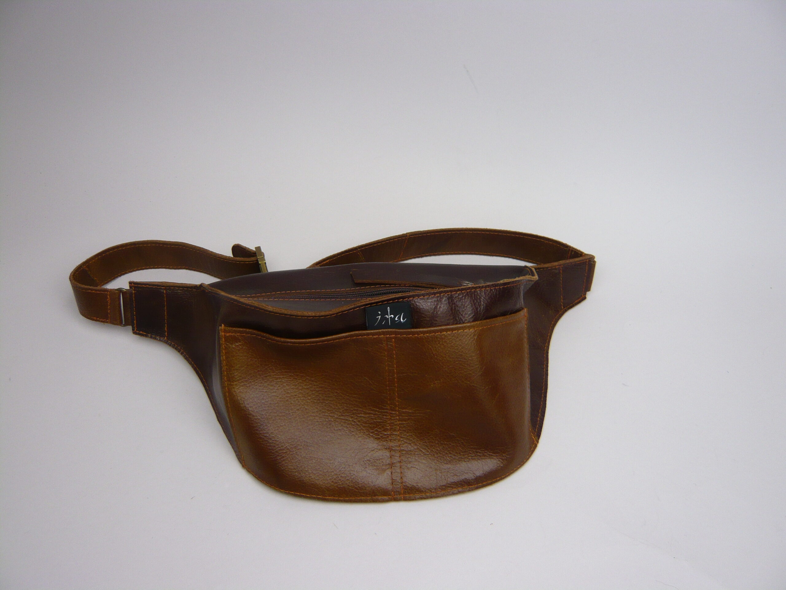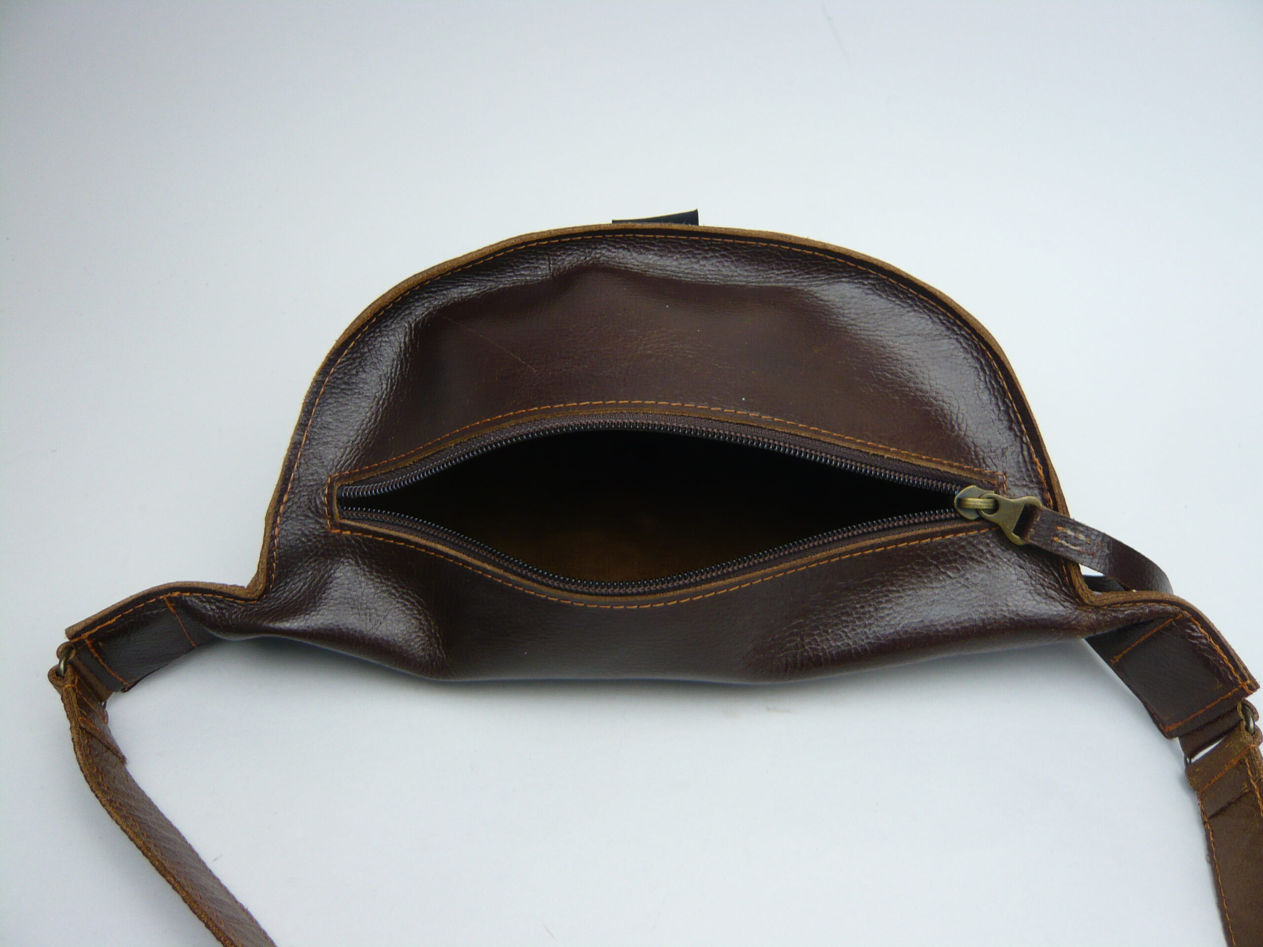 Heuptas van bruinleer is een zeer handig en ruime heuptas van rundleder met een verstelbare band, deze is ook van leer. Er zit bovenop de heuptas een afsluitbare rits en de tas heeft ook nog aan de buitenkant twee vakken om iets in op te bergen. Maten heuptas zijn: H13 cm, B 26cm, Diepte 13 cm.